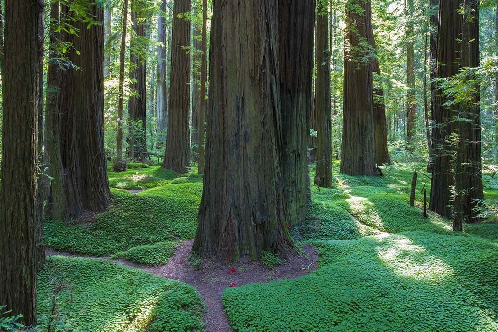 The unusually lush groundcover might result from the grove’s location at the fog-prone northern edge of the park. The sorrel completely covers a forest floor that, unusually, consists of little rolling mounds, and also covers fallen logs.
